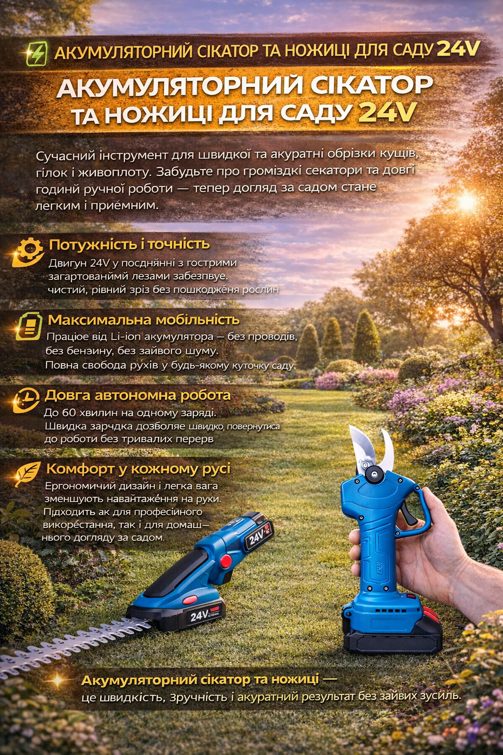 🔋 Акумуляторний сікатор та ножиці для саду 24V Li-ion