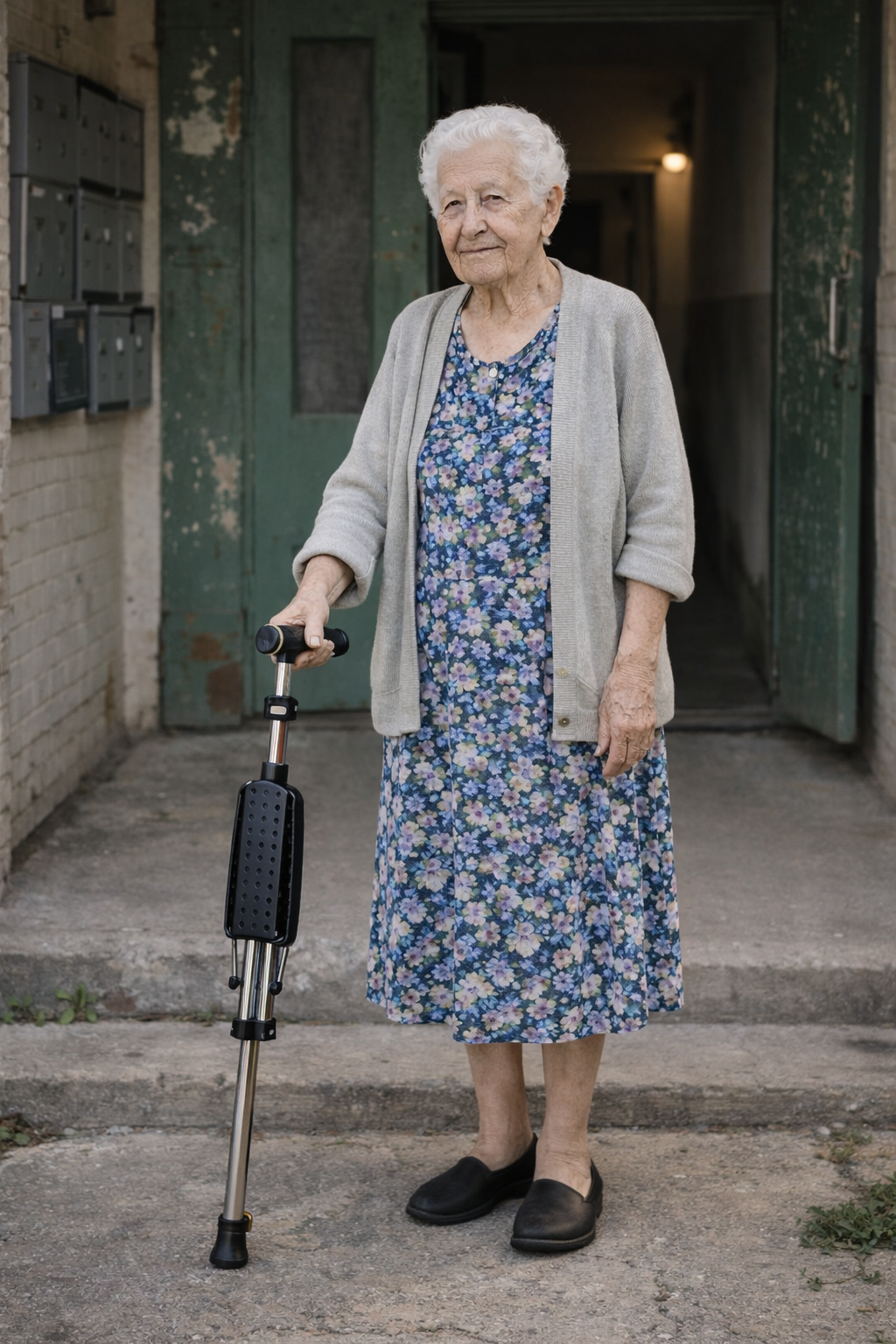 Виготовлена з легкого, але міцного алюмінієвого сплаву. Стійкі ніжки з антиковзкими наконечниками забезпечують стабільність на різних поверхнях.